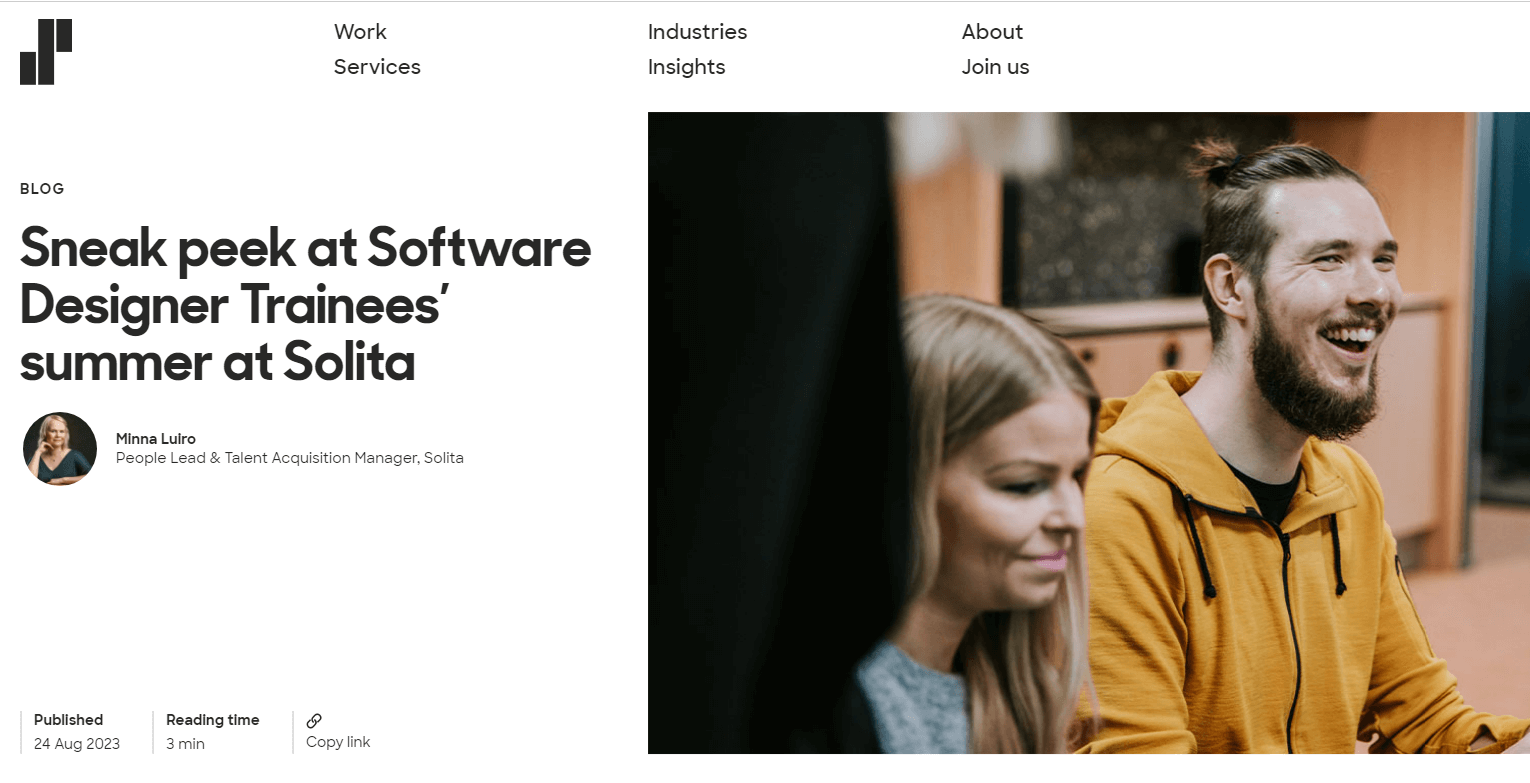 Blog Post about my job experiences at Solita